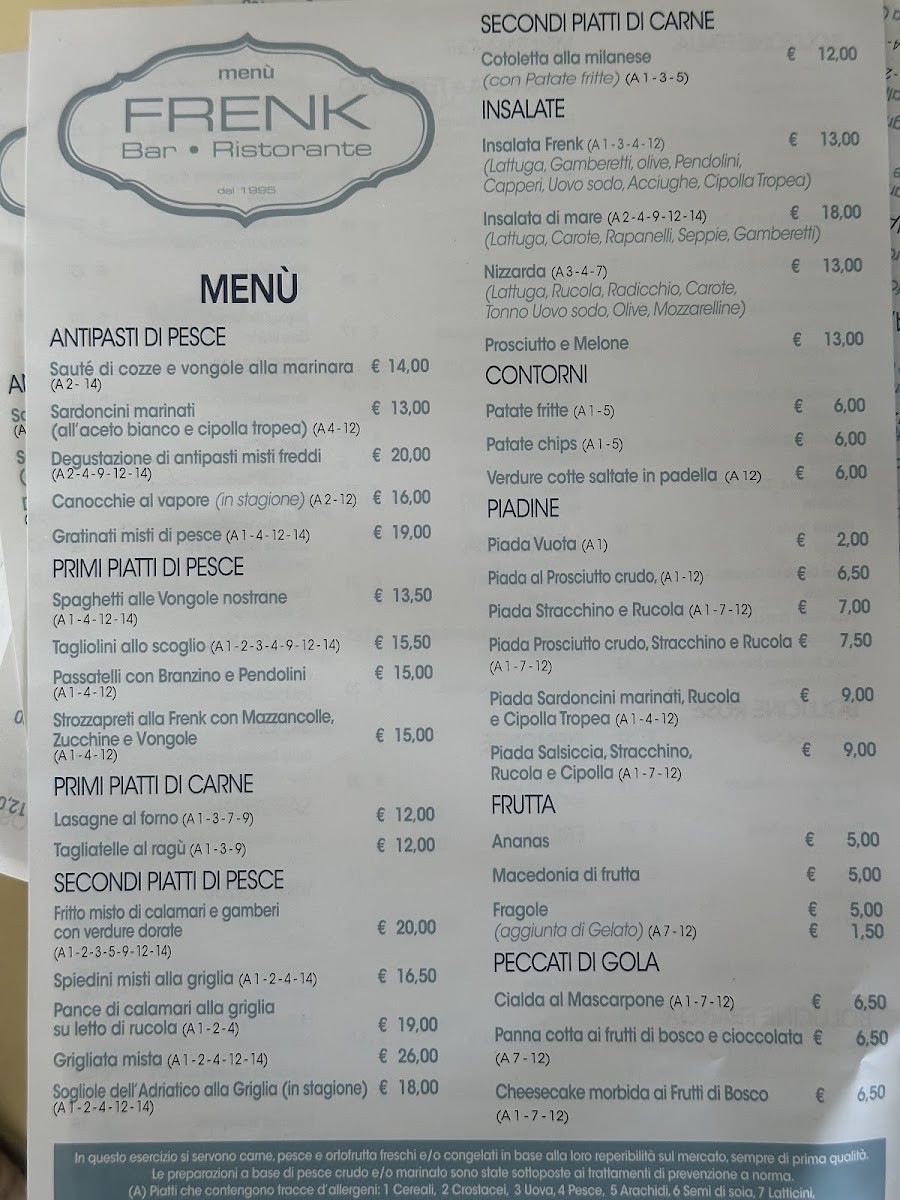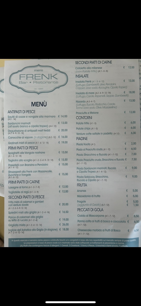 Welcome to Bar Ristorante Frenk, a gem nestled in Riccione, Italy. With its prime beachfront location, this informal restaurant offers a delectable menu that emphasizes fresh and flavorful ingredients. Guests rave about the solid seafood options, with specialties like pasta con cozze delighting palates, though a bit of patience is needed during busy hours.